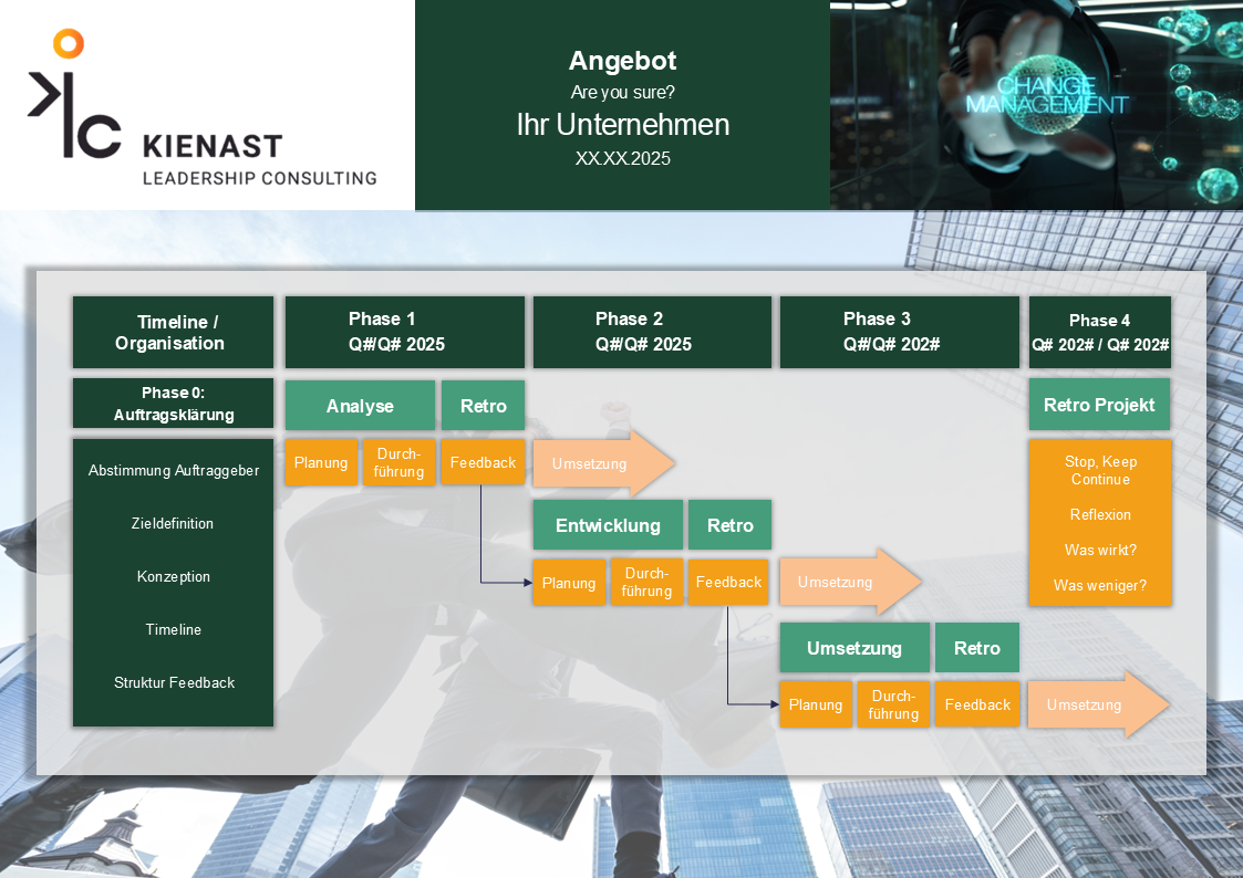 Unser strukturierter Fahrplan sorgt dafür, dass Sie Veränderung nicht nur planen, sondern erfolgreich realisieren.