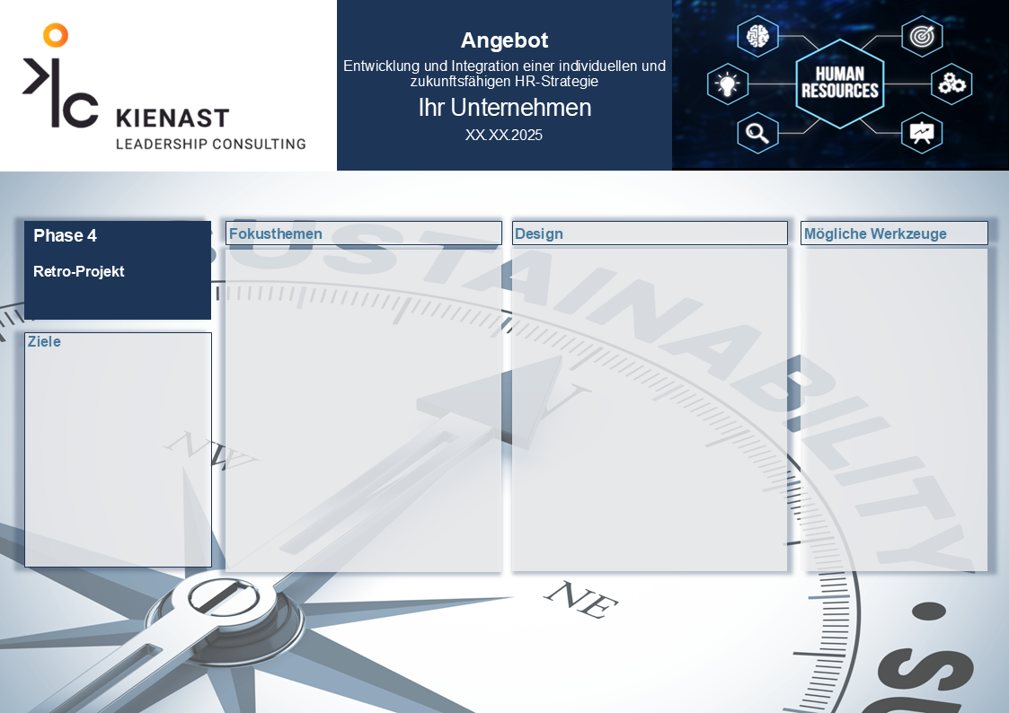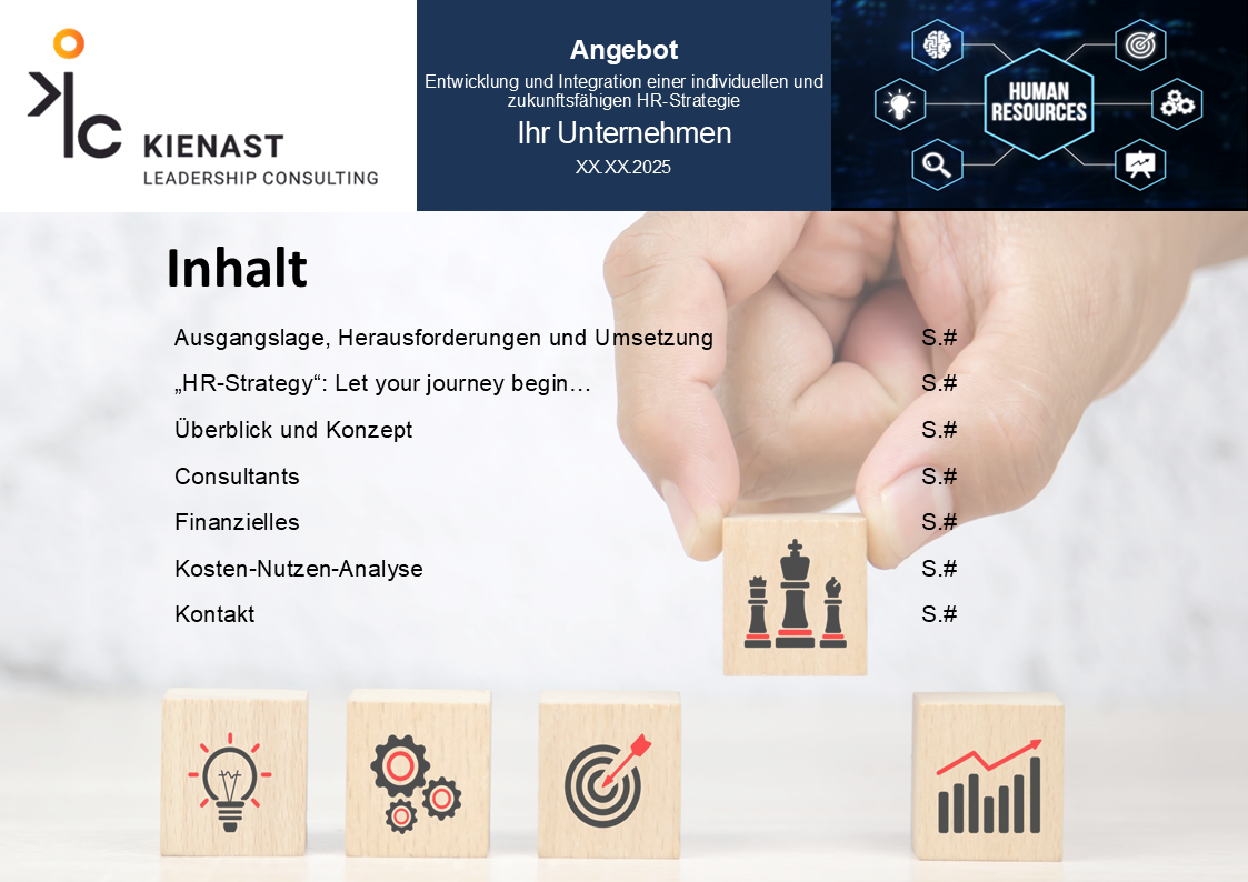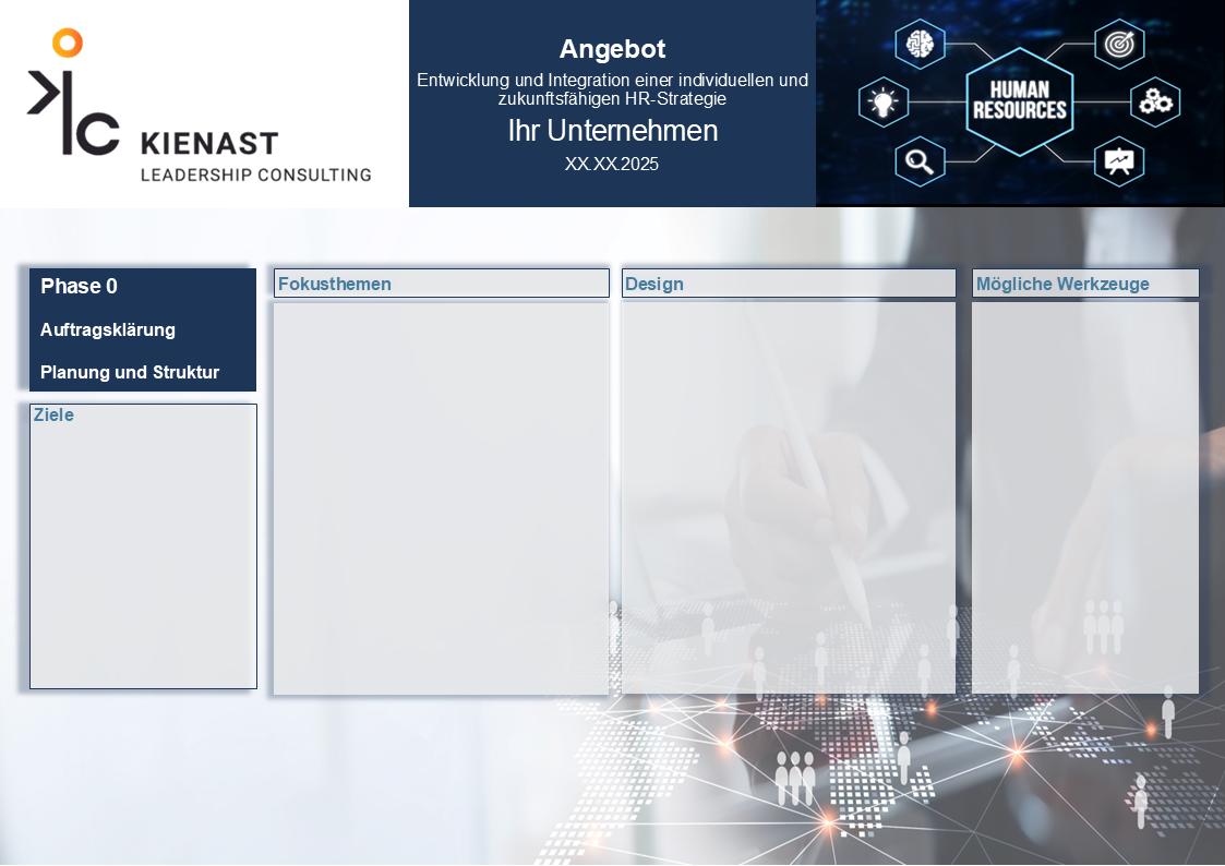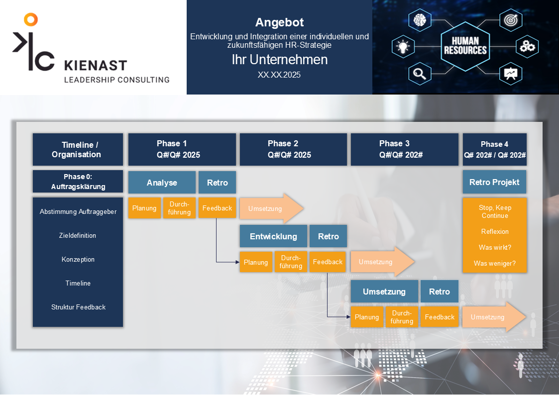 Sie erhalten einen detaillierten Einblick in unsere Vorgehensweise, inklusive einer Kosten-Nutzen-Analyse, um sicherzustellen, dass Ihre Investition in HR-Strategie langfristig einen nachhaltigen Mehrwert für Ihr Unternehmen schafft. Transparenz und klare Zielsetzungen stehen im Mittelpunkt.