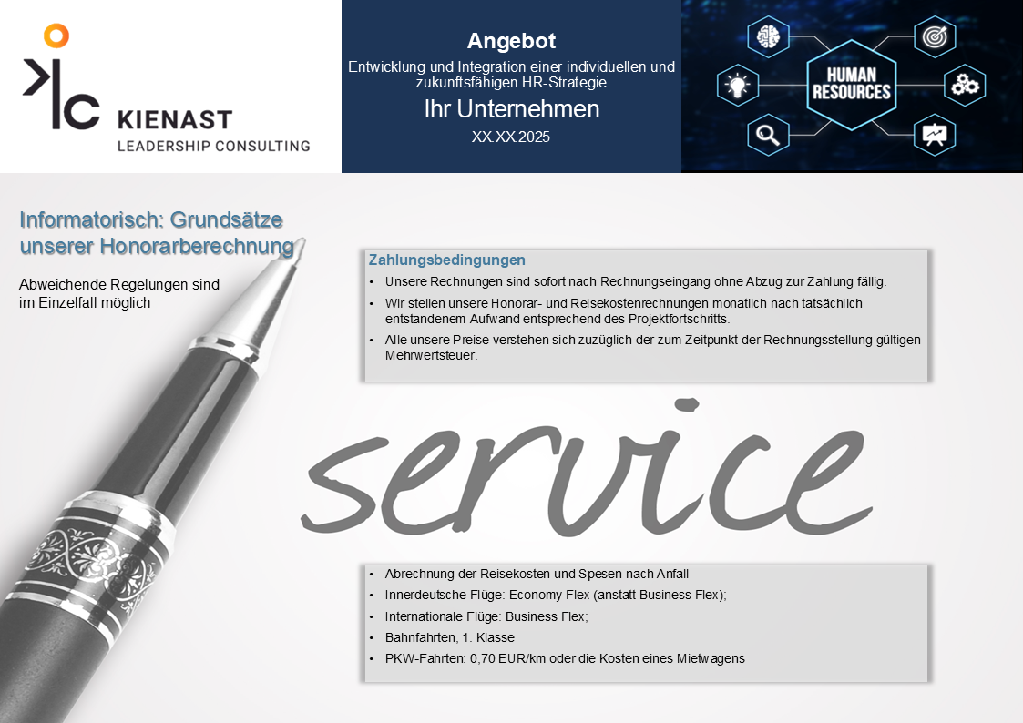 Transparenz in der Abrechnung ist für uns essenziell. Unsere Honorargestaltung basiert auf fairen und marktgerechten Konditionen. Die Abrechnung erfolgt monatlich nach tatsächlichem Aufwand, inklusive Reise- und Spesenkosten.