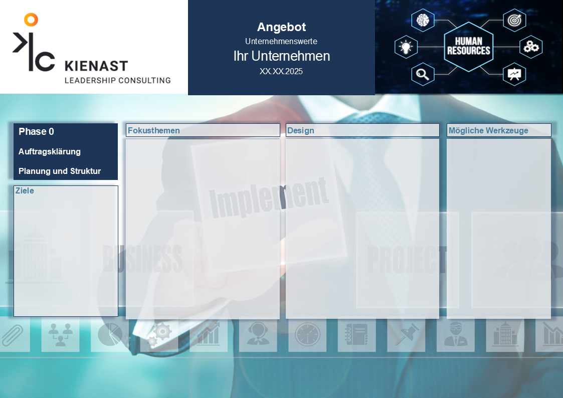 Diese strukturierte Auftragsklärung ermöglicht eine klare Zielorientierung und stellt sicher, dass die definierten Werte langfristig wirksam sind.