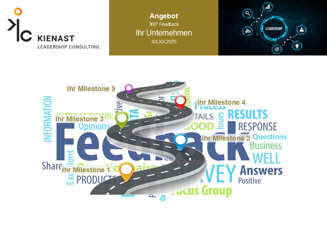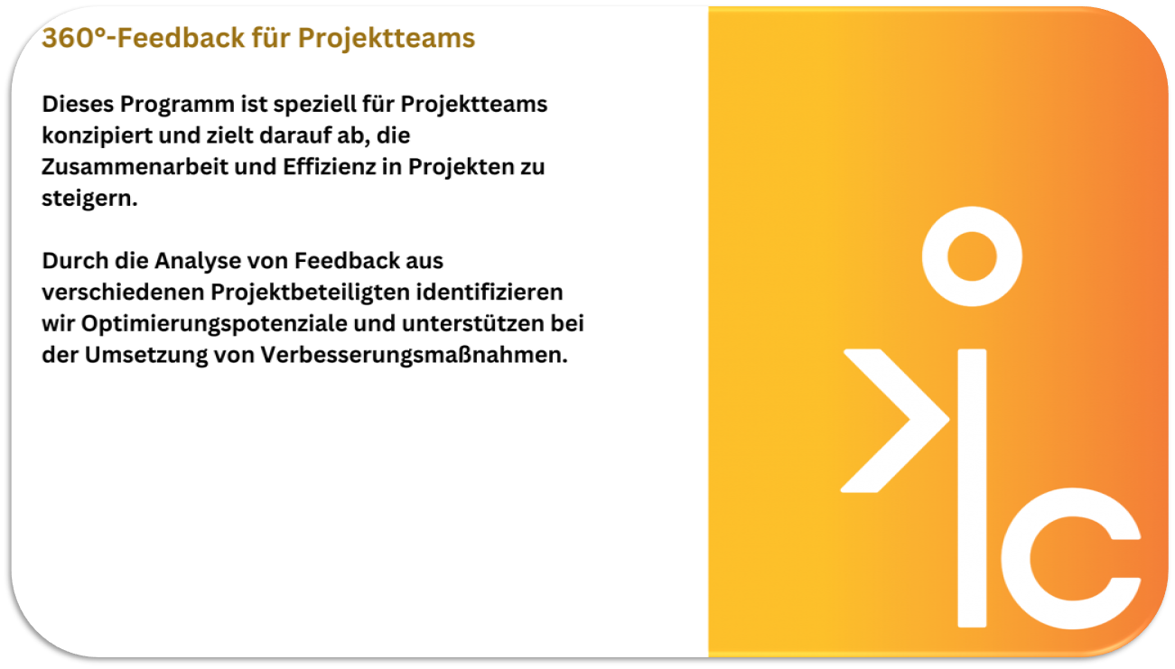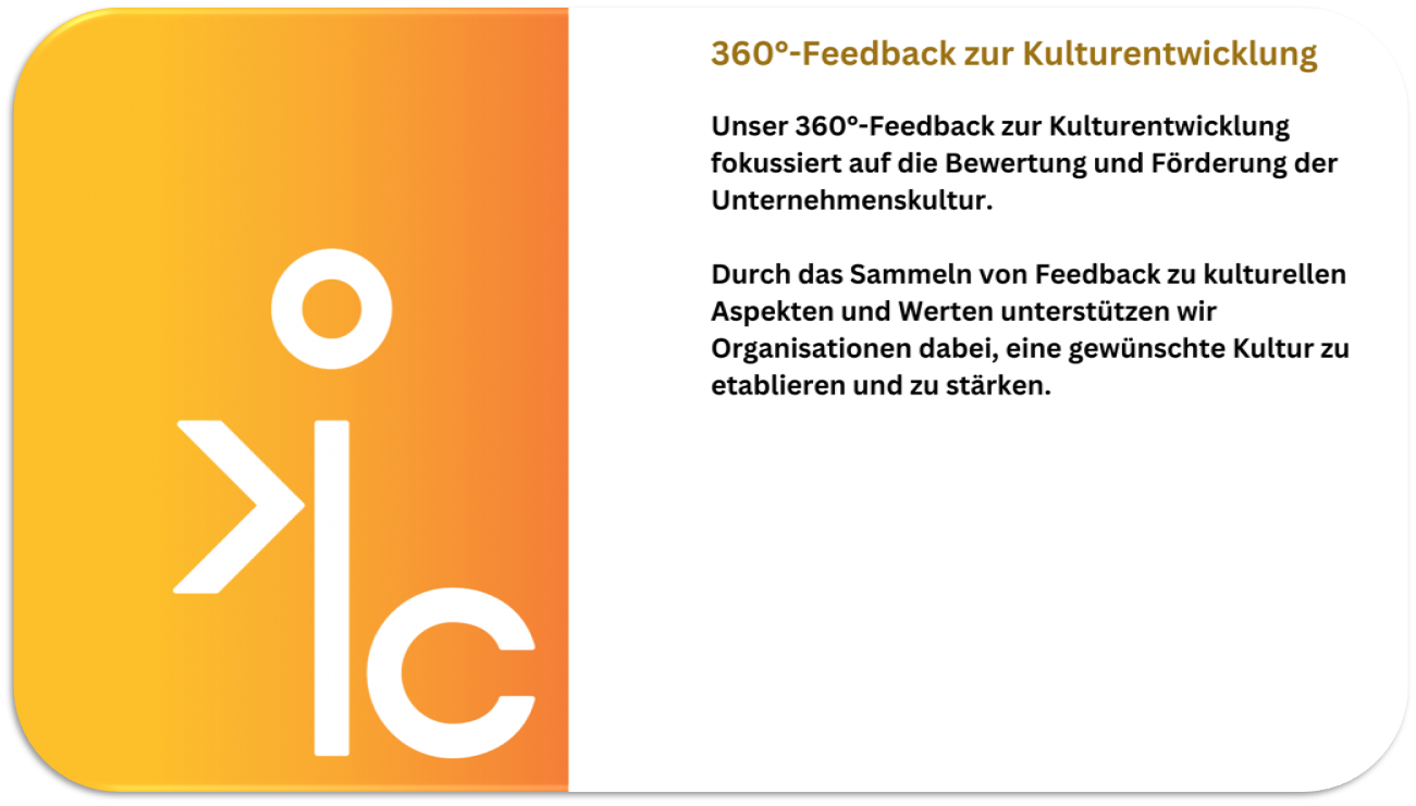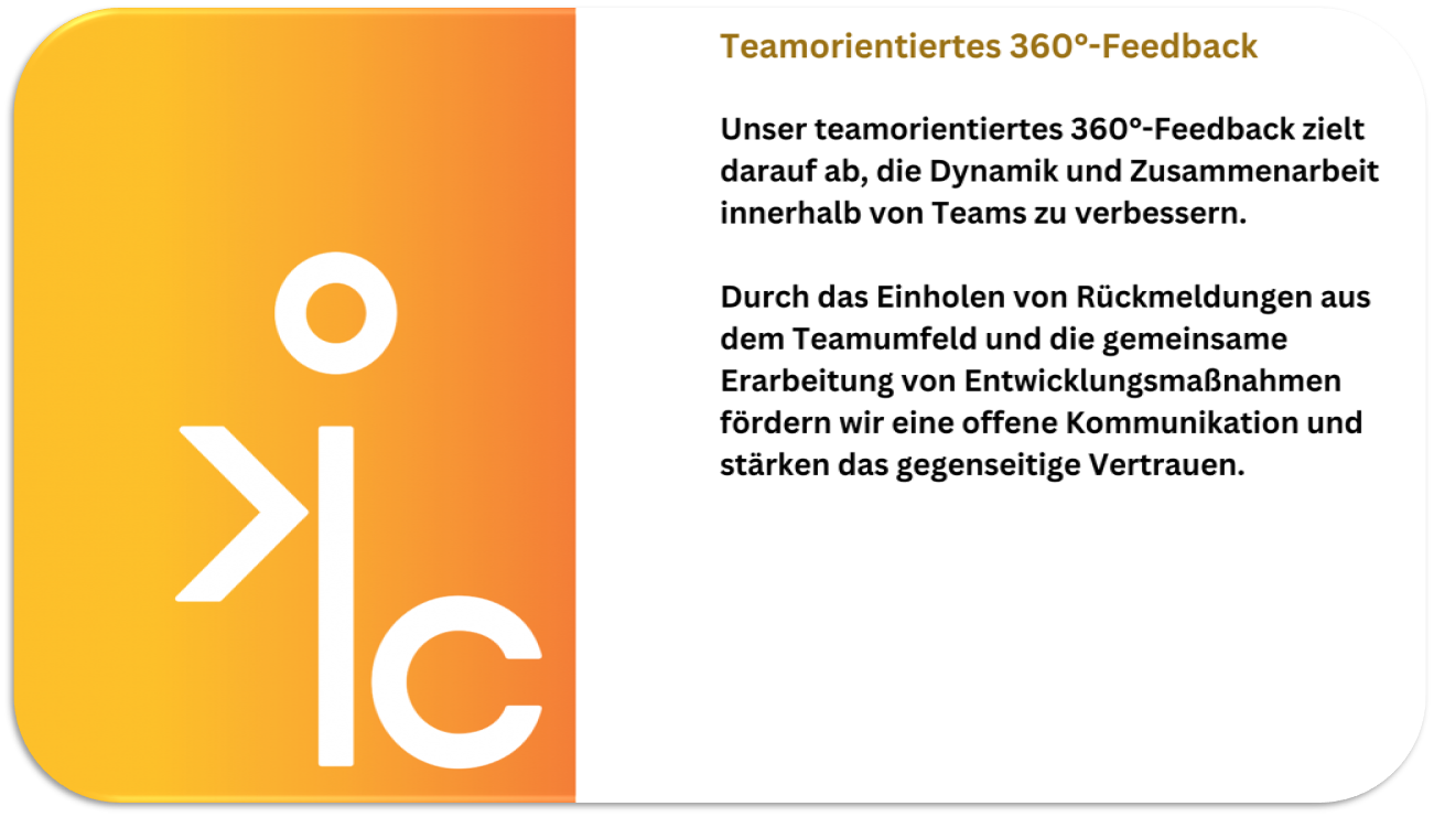 Erhalten Sie ein maßgeschneidertes 360°-Feedback für eine gezielte und nachhaltige Führungskräfteentwicklung in Ihrem Unternehmen. Unser Angebot bietet Ihnen eine fundierte Analyse der Führungsqualität und wertvolle Einsichten zur Weiterentwicklung Ihrer Führungskräfte. Profitieren Sie von einem strukturierten, bewährten Prozess, der auf Transparenz, Effizienz und individueller Anpassung basiert. Gemeinsam definieren wir die Ziele, setzen einen klaren Rahmen und schaffen eine Feedbackkultur, die zu messbaren Erfolgen führt. Ihre Führungskräfte erhalten differenziertes Feedback aus verschiedenen Perspektiven – für eine gezielte Entwicklung und nachhaltigen Unternehmenserfolg.