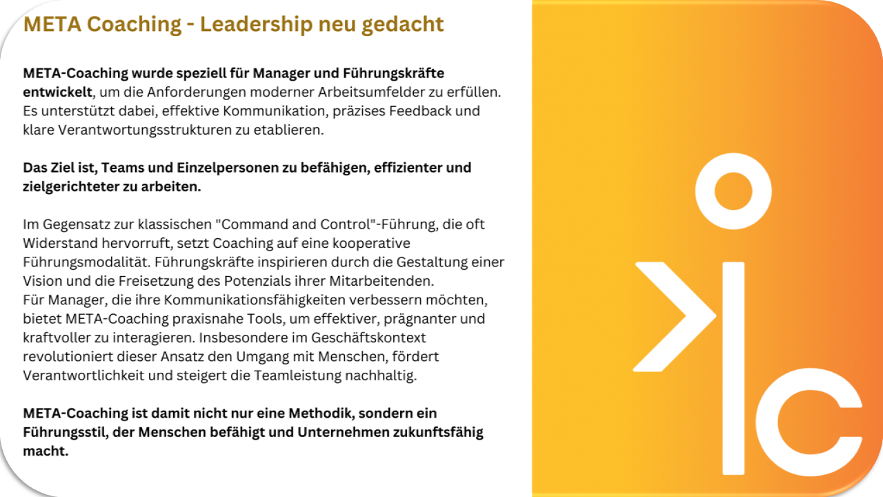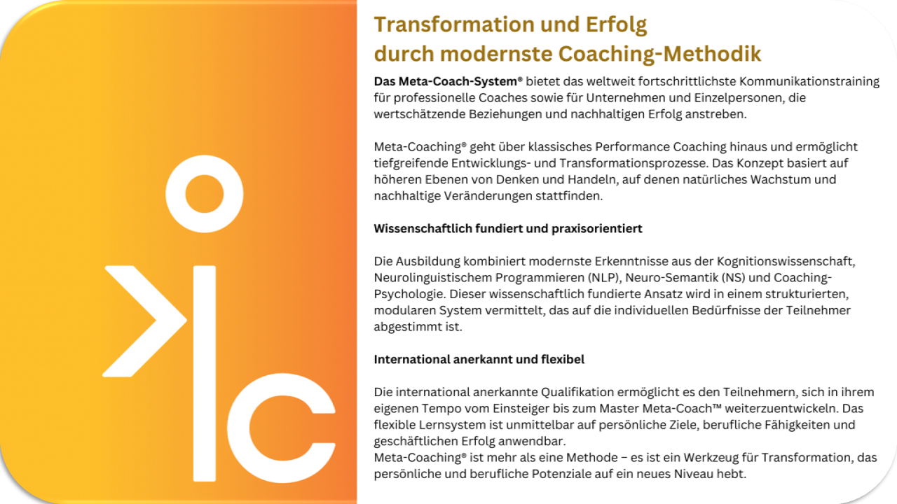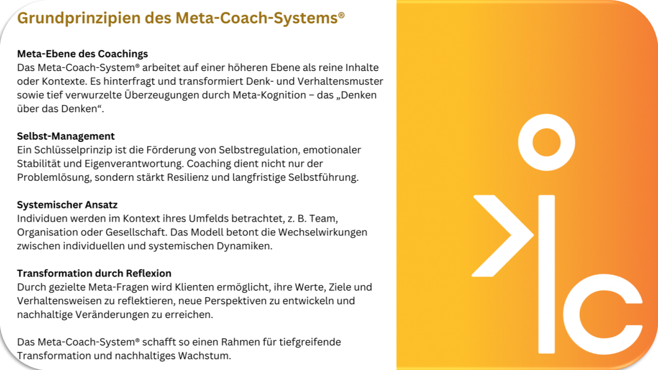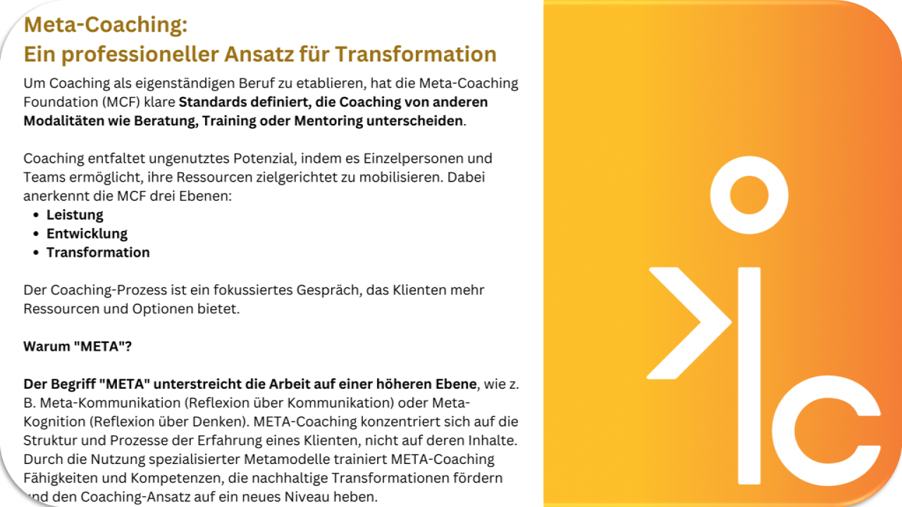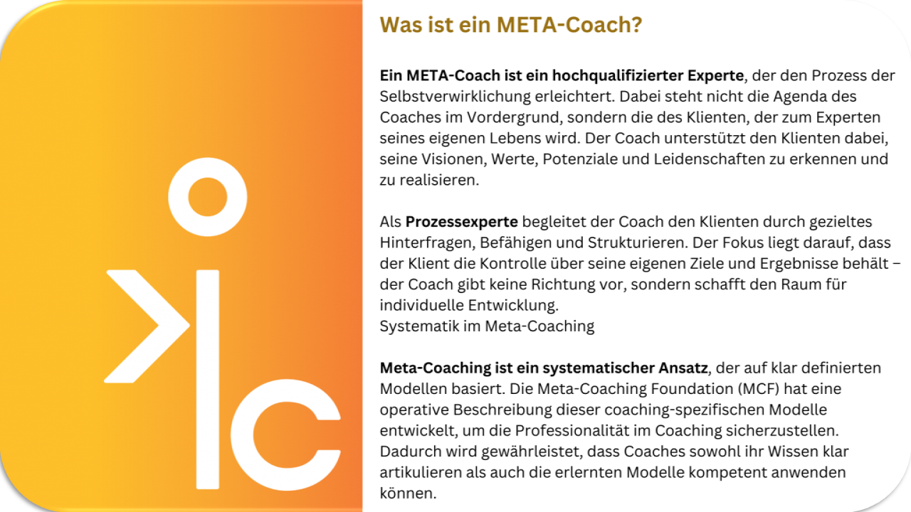 Mit diesem Meta-Wissen und Meta-Skills ist der Meta-Coach in der Lage, das Beste aus dem Klienten herauszuholen.